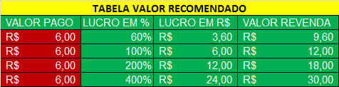 | 6 x de R$0,60 | Total R$3,61 | |